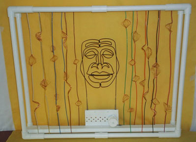 The artist uses elements that emphasize the tension, the electricity of the situation. With electric cords that are sometimes insulated in bright “plastic”, as if everything were everything, while we are also presented with the wire laid bare and twisted, kinked, bent out of smooth shape. Almost AC/DC!